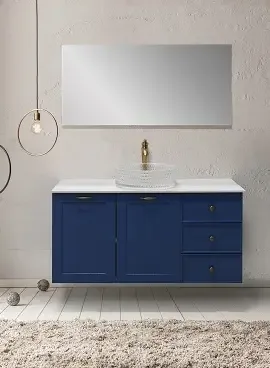 מגירות ודלתות טריקה שקטה + משטח בוצר / קוריאן + מראה קריסטל בלגי מרחפת