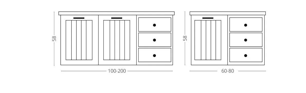 100-200 ס"מ – 3 מגירות + 2 דלתות .