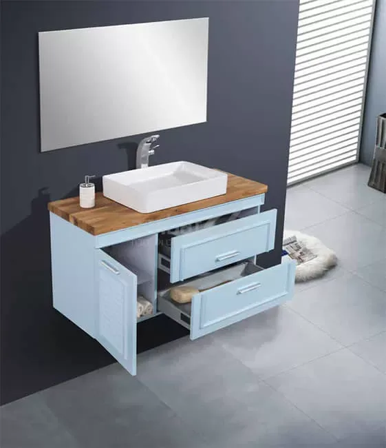מגירות ודלתות טריקה שקטה + משטח בוצ'ר + מראה קריסטל בלגי מרחפת