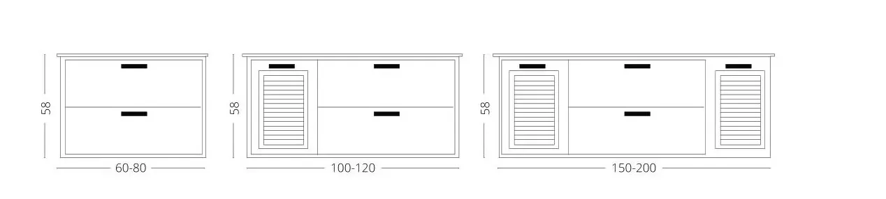 150-200 ס"מ – 2 מגירות + 2 דלתות תריס