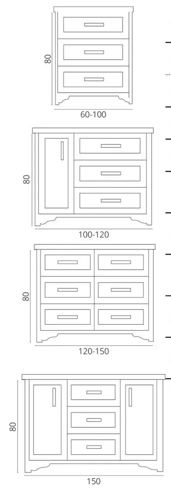 60-100 ס"מ – 3 מגירות.