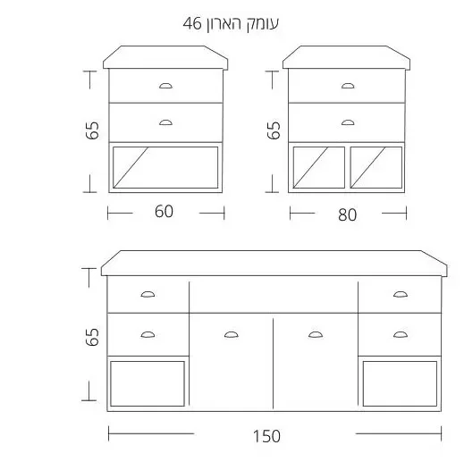 150 ס"מ – 4 מגירות + 2 דלתות + 2 תאים.