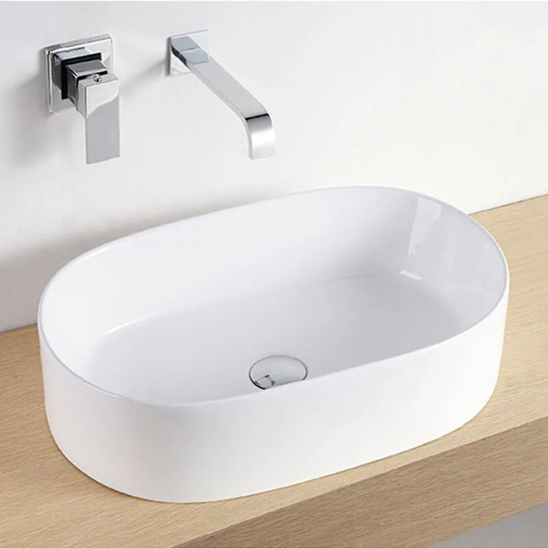 כיור אובלי מונח כולל ונטיל לחיצה / אביק חרס תואם.