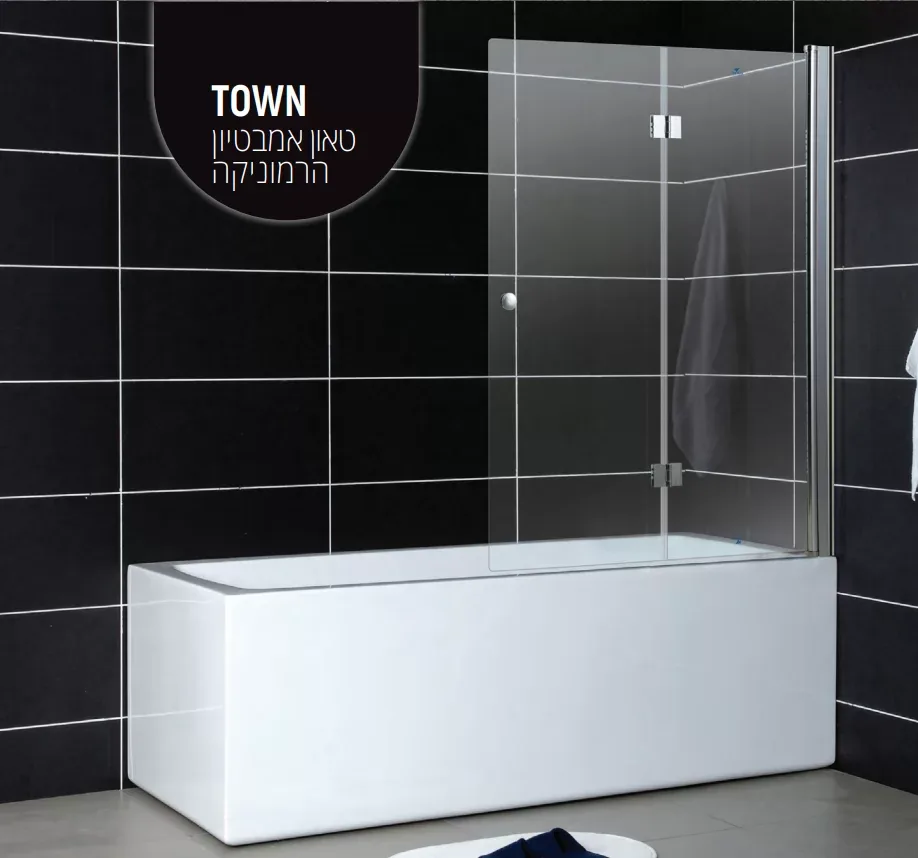 אמבטיון מתקפל ונצמד לקיר , פתיחה פנימה והחוצה . גובה 140 ס"מ. מידה – 55 + 55 ס״מ.– פרזול : ידית כפתור.– זכוכית מחוסמת 6 מ״מ.– פרופיל כרום איכותי.